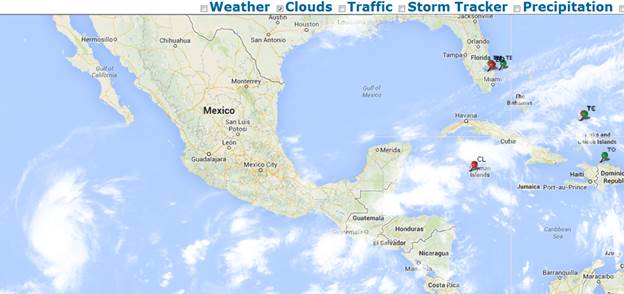 It shows Active Tropical Cyclones provided by the National Hurricane Center and the National Oceanic and Atmospheric Administration NOAA http://www.nhc.noaa.gov/