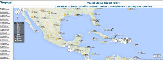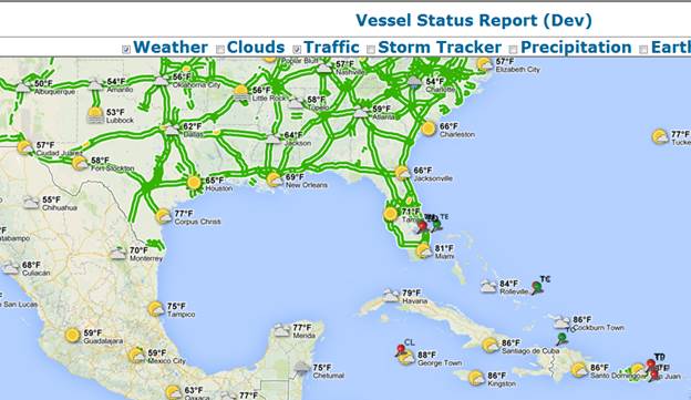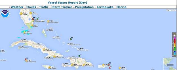 The new Vessel Tracking system’s framework was enhanced to allow layers to be added without additional code changes. This was supported by allowing the system to use a new overlay layer by passing the layer’s information to the vessel tracking system in the url string. An example of this